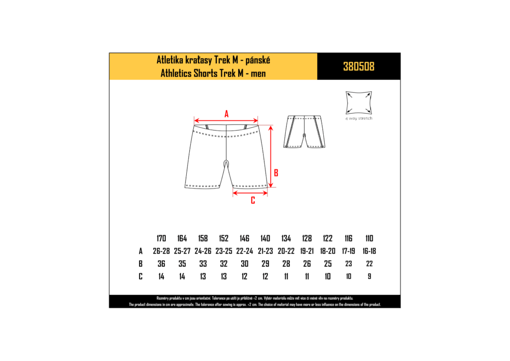 Velikostní tabulka slouží pouze jako orientační pomůcka – uvádí rozměry oblečení, nikoli tělesné míry. Doporučujeme změřit oděv, který vám dobře sedí, a porovnat jeho rozměry s údaji v tabulce. Tolerance po ušití je přibližně ±2 cm. Pro co nejpřesnější měření použijte krejčovský metr, položte oděv rubem nahoru na rovný povrch, pečlivě ho vyrovnejte a poté změřte. Mějte na paměti, že výběr materiálu může mírně ovlivnit konečné rozměry produktu.