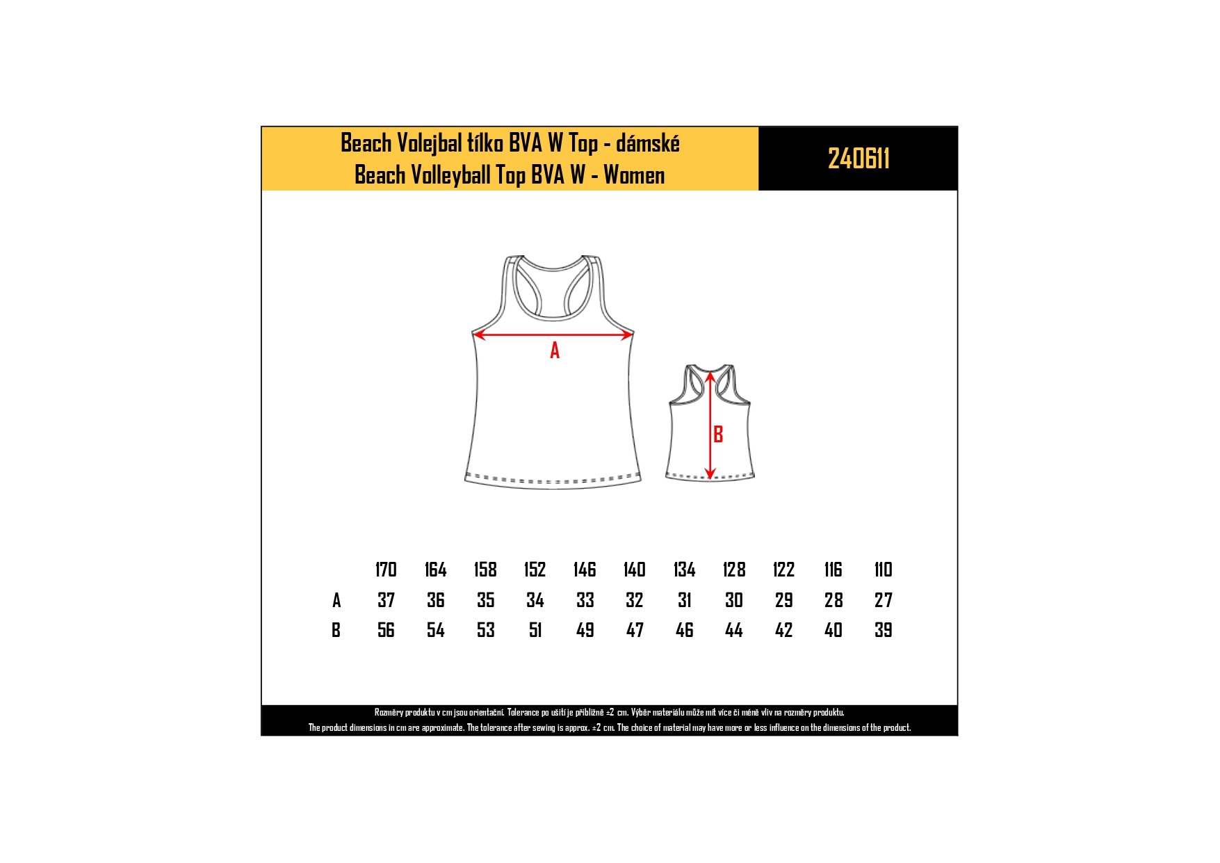 Velikostní tabulka slouží pouze jako orientační pomůcka – uvádí rozměry oblečení, nikoli tělesné míry. Doporučujeme změřit oděv, který vám dobře sedí, a porovnat jeho rozměry s údaji v tabulce. Tolerance po ušití je přibližně ±2 cm. Pro co nejpřesnější měření použijte krejčovský metr, položte oděv rubem nahoru na rovný povrch, pečlivě ho vyrovnejte a poté změřte. Mějte na paměti, že výběr materiálu může mírně ovlivnit konečné rozměry produktu.
