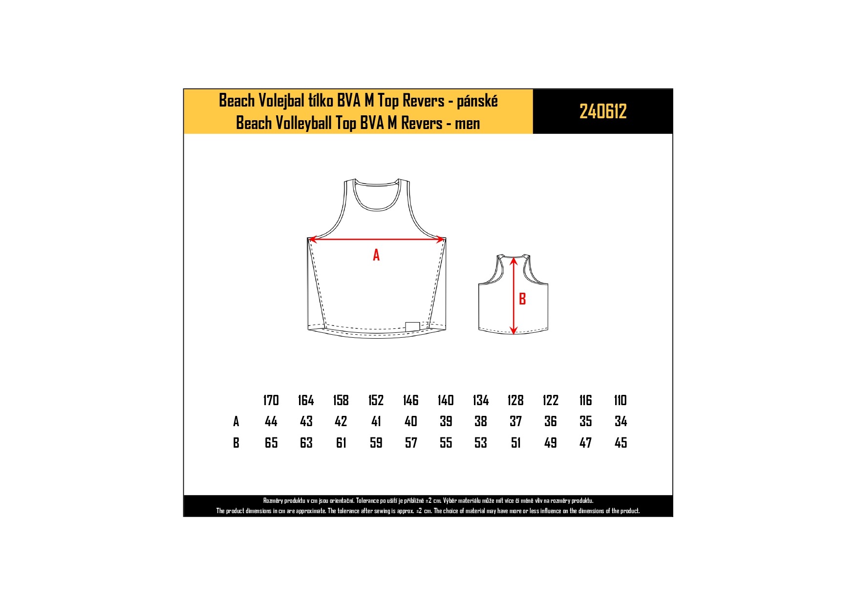 Velikostní tabulka slouží pouze jako orientační pomůcka – uvádí rozměry oblečení, nikoli tělesné míry. Doporučujeme změřit oděv, který vám dobře sedí, a porovnat jeho rozměry s údaji v tabulce. Tolerance po ušití je přibližně ±2 cm. Pro co nejpřesnější měření použijte krejčovský metr, položte oděv rubem nahoru na rovný povrch, pečlivě ho vyrovnejte a poté změřte. Mějte na paměti, že výběr materiálu může mírně ovlivnit konečné rozměry produktu.